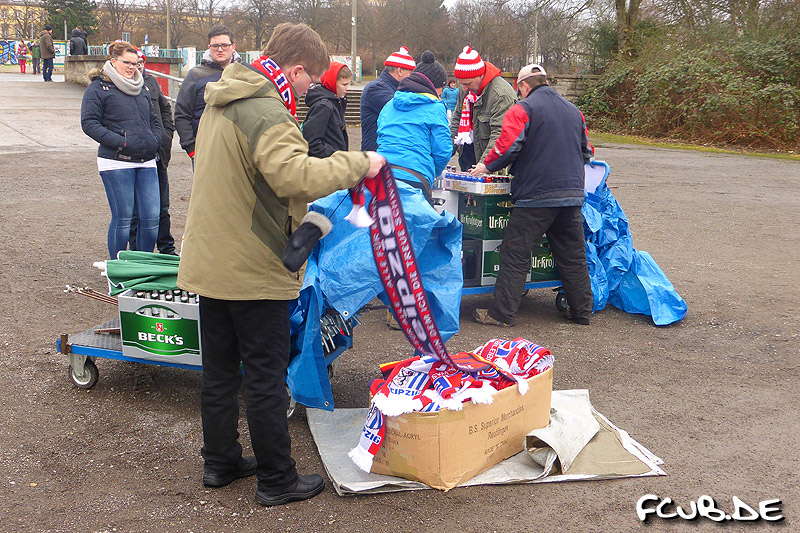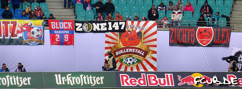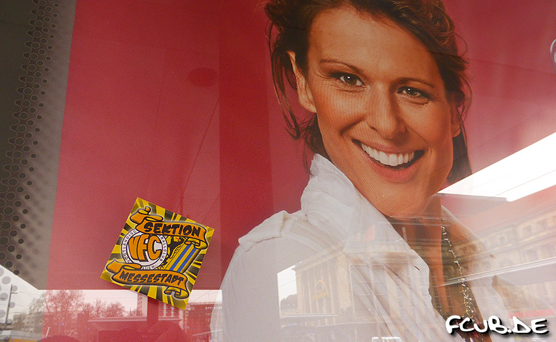 hinter jeder Ecke Marketingstrategien entdeckt hat... sukLeipzig. Leipzig ist ja nun mal so ne Sache. Schon früher konnte ich weder etwas mit grün-weiß, noch (natürlich) mit gelb-blau anfangen. Und auch rot-weiß-blau ist aus verständlichen Gründen relativ unsympathisch. Leipzig – eine in Vereinen manifestierte No-Go-Area. Und doch... und doch war mir eigentlich relativ zeitig klar, dass diese Regel noch einmal gebrochen werden musste, denn diesen Klamauk im Leipziger Zentralstadion, wollte ich mir unbedingt einmal mit eigenen Augen ansehen. Und weil die alten Rasenkrieger sich (bis auf Rocco natürlich – check) gerade etwas weniger um Leipziger Auswärtsfahrten, als vielmehr um Familiensonntage und Karrieresprünge kümmern, kam mir das Angebot eines Tagesausflugs nach Sachsen mit FUDU-Tours natürlich gerade recht.