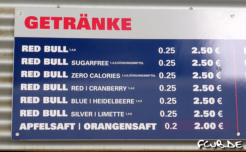 Auf dem Weg zum Stadion passieren wir ein Spiel von Hobbybolzern, die so selbstverständlich dort kicken, dass sie eigentlich nur von RB bezahlt sein können, um familiäre Entspanntheit zu demonstrieren. Das jedenfalls mein erster Gedanke. Als nächstes fallen Bastelpappen ins Auge, die man mit etwas Geschick, zu kleinen Flüstertüten zusammenstecken kann. Da hat sich ein RB-Marketingstratege ein schönes verlängertes Wochenende mit Stadionbesuch in Salzburg verdient, möchte ich wetten. Für zwei Personen, versteht sich. Im Stadion dann die erste echte Enttäuschung - tatsächlich gibt es im Stadion KEINE RB-Cashcard zu erwerben. Man kann seine Dose Red Bull tatsächlich in bar bezahlen. Schade, hätte so gut gepasst, fand nicht nur Holger.