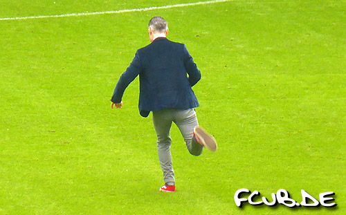 Und das Publikum? Jubelt ausgelassen und bleibt ansonsten brav, bis es von der Hintertortribüne zum Mitmachen aufgefordert wird. Alles so, wie es sein soll. Selbst das Bitten nach der Halbzeit, dass wir uns doch wieder hinsetzen sollten, blieb bis weit nach der Pause höflich. Lediglich der IKEA Hooligan (passenderweise ;) wurde Ziel eines überschwänglich feiernden (um nicht zu sagen „ihm ins Gesicht brüllenden“) Daddys. Doch bevor es zu unschönen Szenen in Sitzreihe 23 kommen konnte, denn der Oberkörper unseres Mitstreiters war bereits merklich nach vorne geschnellt, übernahm seine Freundin das Kommando und watschte den Daddy nebst dessen Schnalle verbal gekonnt ab. Schade… ;)