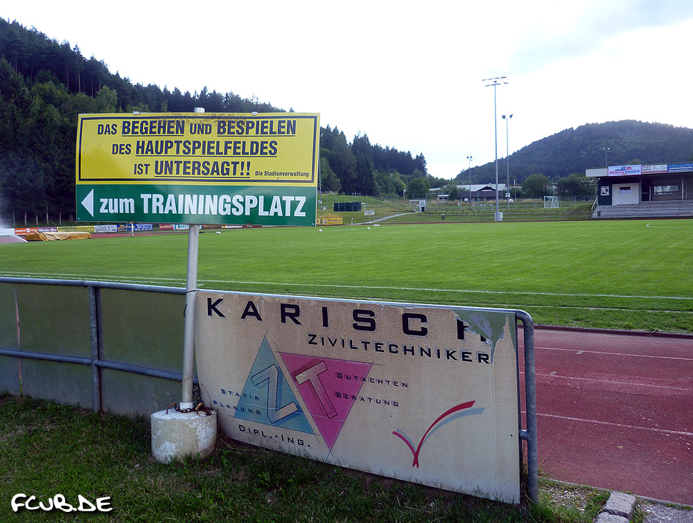 Hier spielt nämlich um 18 Uhr der großartige 1. FC Union Berlin gegen den österreichischen Erstligisten Wolfsberger AC (mit dem putzigen Beinamen „RZ PELLETS“), der neben dem altbekannten Silvio vor allen Dingen auf der Chefcoach-Position in Didi Kühbauer einen namhaften Akteur der Fußballszene aufzubieten hat. Da zudem mit Verteidiger Joachim Standfest und Mittelfeldstar Boris Hüttenbrenner zwei meiner Lieblingsösterreicher aus dem Sonderheft, welches ich damals in Innsbruck geschenkt bekommen habe, ebenfalls mit von der Partie sind, lohnt es sich bereits aus diesem Grunde, für den Testspielkick 10 Euro zu berappen. Im Stadion finden sich letztlich 410 Zuschauer ein, darunter gut 50 Unioner, die Teile der kleinen Sitzplatztribüne und vor allen Dingen die Gaststätte gegenüber für sich beanspruchen. Gut sichtbar wird ein Transparent in Gedenken an den verstorbenen Union-Reeder Eddy angebracht. Mit dieser Schock-Nachricht in den Knochen, die uns bereits heute Morgen auf dem Weg zum Flughafen per SMS erreicht hatte, ist es nur selbstverständlich, dass der Union-Anhang heute auf lautstarke Fußballparty verzichtet und eher stillschweigend Zeuge dieses Testspiels wird.