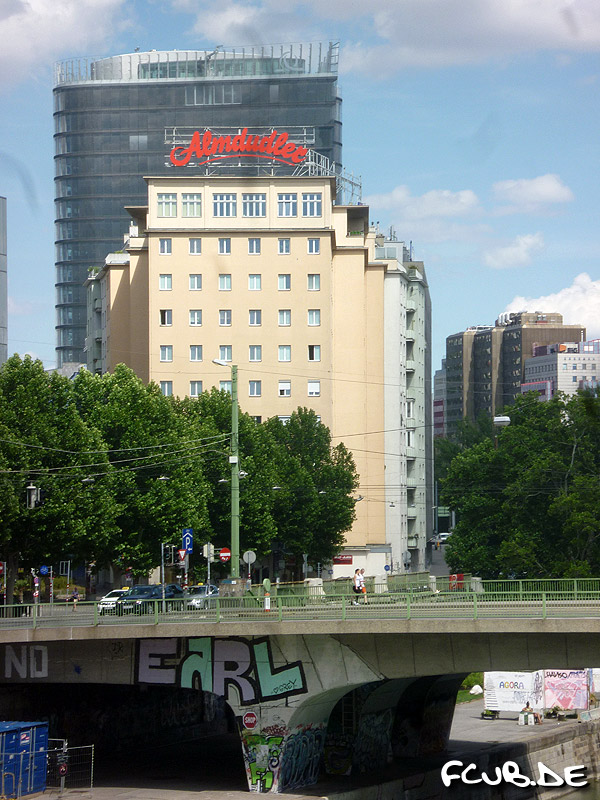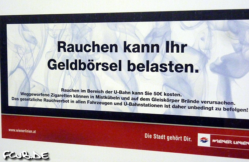 Nach einer Kneipentour, die in erster Linie vor verschlossenen Kneipen ("Sperrstunde") entlangführte, war es auch für mich Zeit, Abschied von der Stadt Wien zu nehmen. Während der Rest der FUDU-Besatzung mit einem freien Montag gesegnet war und noch einmal in die Ferienwohnung zurückkehrte, machte ich mich auf dem Weg zum Flughafen. Ein kleines Nickerchen am Airport, dann in den 6.20 Uhr Flieger steigen, um dann gegen 13 Uhr auf der Arbeit einzutrudeln. Soweit der Plan. Leider endete die Anreise jedoch gegen 1.00 Uhr am Bahnhof Wien-Mitte, mit der Erkenntnis, dass die erste S-Bahn zum Flughafen erst um 4.30 Uhr fährt. Die Gastrokette Vapiano war jedoch offenbar in dem festen Glauben daran, dass es in Wien keine Asozialen gibt, die sich nachts vor Bahnhöfen in Restaurants legen, so freundlich, ihre gepolsterten Sitzmöbel draußen stehen zu lassen und mich zur Nachtruhe zu bitten. Nett.
